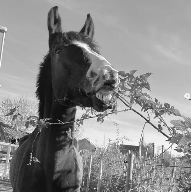 In de paardentuin kunnen de zes paarden die we hebben staan zo veel mogelijk natuurlijk gedrag vertonen. Ze worden uitgedaagd om veel te bewegen. En alles wat er groeit en bloeit kunnen ze eten. Want als onze paarden goed in hun vel zitten, dan zitten wij dat ook. En alleen dan kunnen we ze inzetten om ook anderen te ondersteunen.